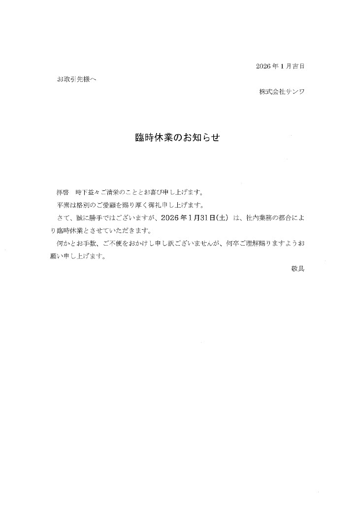社内業務の都合により臨時休業とさせていただきます。